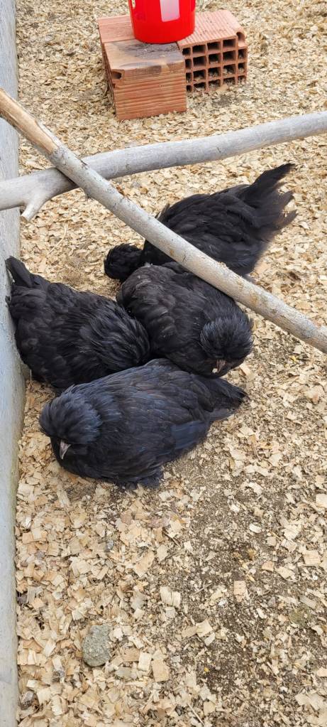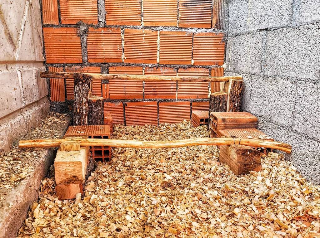 En zoals je op bovenstaande foto kan zien zijn we al begonnen met de upgrade. We hebben wat extra stokken geplaatst. Ik heb al gehoord dat ik er voor moet zorgen dat de hoogste stok zo lang moet zijn, dat ze er allemaal op zouden kunnen. De kipjes willen graag zo hoog mogelijk zitten en om daar dan bonje over te maken…. Dus, ik verveel me voorlopig niet.