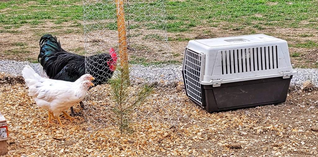Zafer had nog 1 Lohman Brown en die wilde hij wel aan ons geven, samen met een Tinted. In de kattentransport bak en op naar huis, kijken hoe de nieuwe kipjes ontvangen zouden worden in de ren. (kijk ook maar eens naar het filmpje waar dit bericht mee begint)