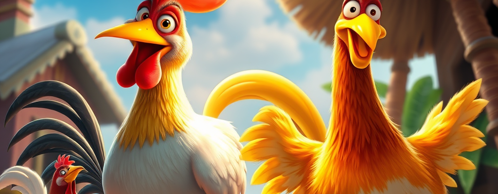 Een andere beroemde kip is Hei Hei uit Disney’s Moana (2016). Hoewel Hei Hei’s intelligentie te wensen overlaat, brengt zijn aanwezigheid onmiskenbare komische verlichting en maakt hij deel uit van Moana’s epische avontuur. Zijn onhandigheid en onschuld maken hem tot een geliefd personage bij zowel kinderen als volwassenen.