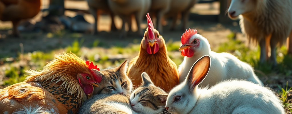 Stel je voor: een serene boerderij waar een kip en een kat samen een dutje doen, een konijn en een kip gezellig zij aan zij rondscharrelen en schapen en kippen vreedzaam grazen. Klinkt als een scène uit een kinderboek, toch? Maar deze ongewone vriendschappen zijn in de echte wereld heel reëel en bieden ons waardevolle lessen over sociale interactie en empathie in het dierenrijk.