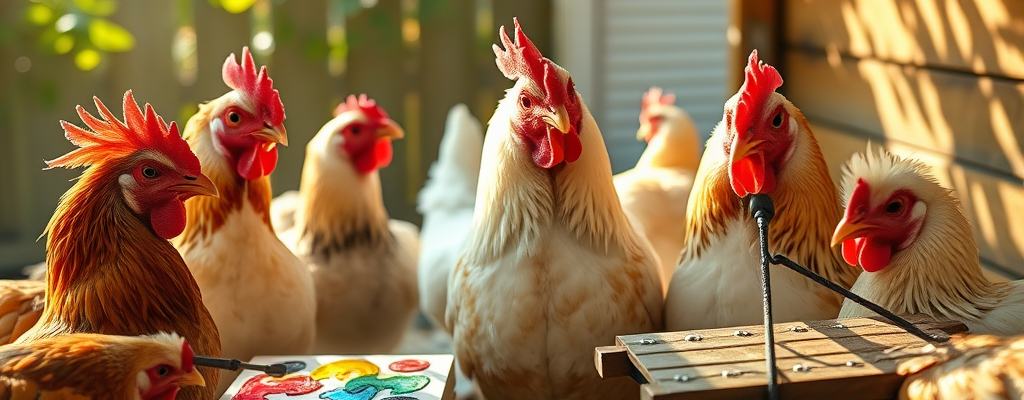 We hebben eerder gezien hoe kippen in staat zijn om kunst te maken door over doeken met verf te lopen. Maar hun artistieke talenten stoppen daar niet. Kippen kunnen ook muziek maken! In een project genaamd “The Hen-strument Orchestra” werden kippen getraind om eenvoudige muziekinstrumenten te bespelen, zoals kleine xylofoons en drums. Het resultaat was een verrassend harmonieuze melodie, gecreëerd door onze gevederde vrienden.